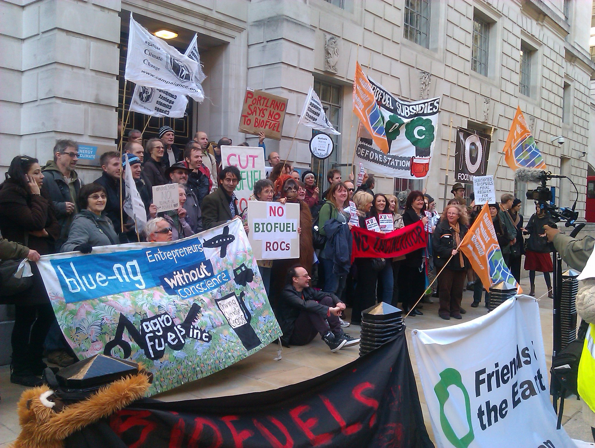 Protesters outside DECC Published October 26, 2011 at 2048 × 1542 in Protesters outside DECC ← Previous Next → Protesters Call for the end of the subsidisation of destructive Biomass and Biofuels